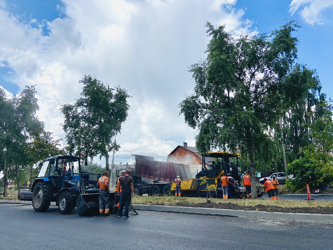 Работы проводятся на двух участках. Специалисты подрядной организации выполнили фрезерование и устройство выравнивающего слоя асфальтобетонного покрытия с заменой бортового камня.