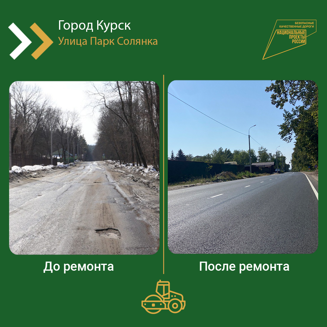 В Курской городской агломерации провели ремонт автомобильной дороги на улице Парк Солянка. Работы велись благодаря национальному проекту «Безопасные качественные дороги», инициированному Президентом РФ Владимиром Путиным.