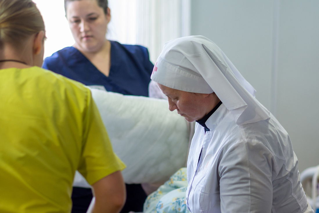 «Нашим медикам уже около месяца помогают сестры милосердия Больницы Святителя Алексия. Они приезжают из Москвы и трудятся в больнице группами по 4-5 человек, ухаживая за тяжелыми пациентами», – рассказал главный врач Курской областной больницы Михаил Лукашов.