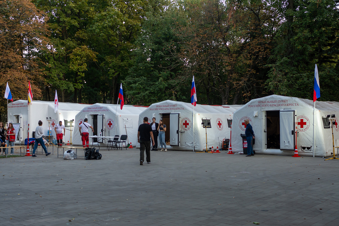 По поручению губернатора Курской области Алексея Смирнова в парке Героев Гражданской войны развернуты мобильные пункты Курского отделения Российского Красного Креста.