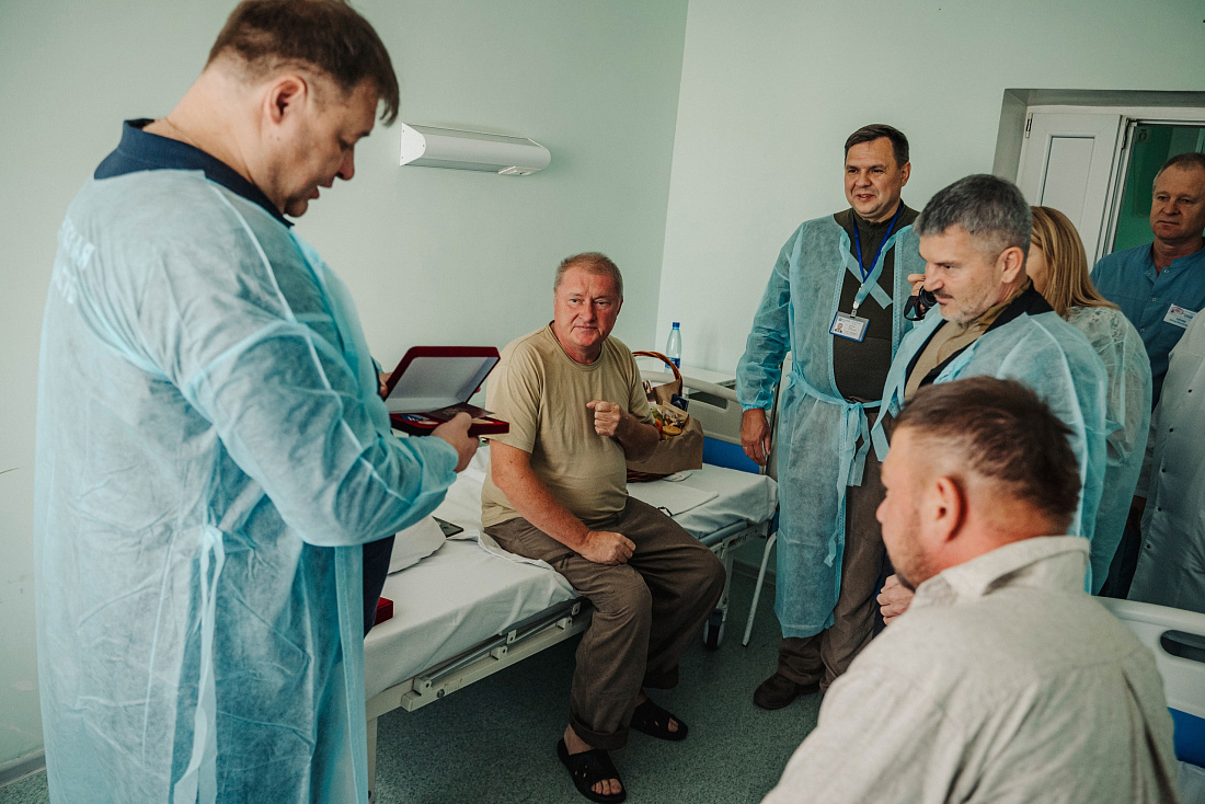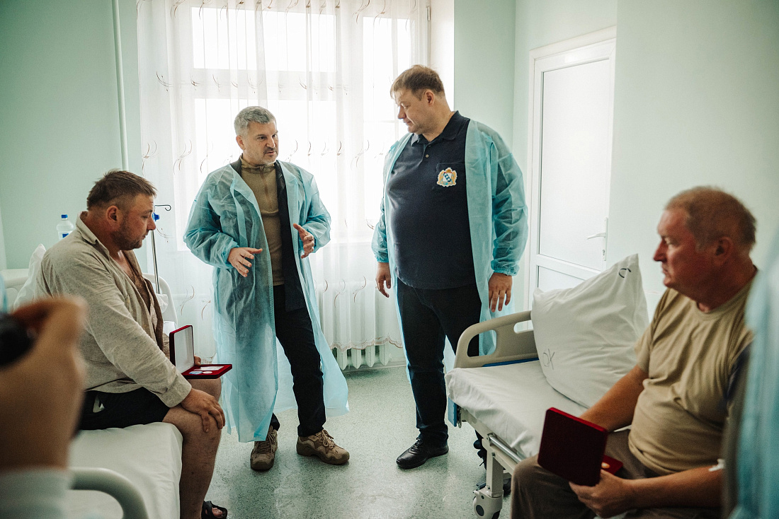 Врио первого заместителя губернатора - председателя Правительства Курской области Алексей Дедов и генеральный директор ПАО «Россети Центр» Игорь Маковский посетили в Курской областной больнице энергетиков компании «Россети Центр» Владимира Шапкова и Владимира Лобанова. Во время атаки ВСУ они получили ранения, когда восстанавливали электроснабжение для мирного населения в одном из приграничных районов. Сейчас специалистам оказывают всю необходимую медицинскую помощь.