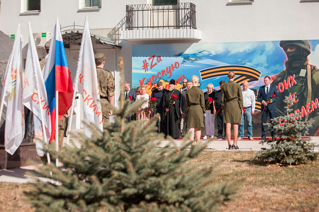 ПВР Курска с творческой программой посетила делегация Белгородской области. Мероприятие началось с возложения цветов к памятному знаку «Защитникам Отечества».