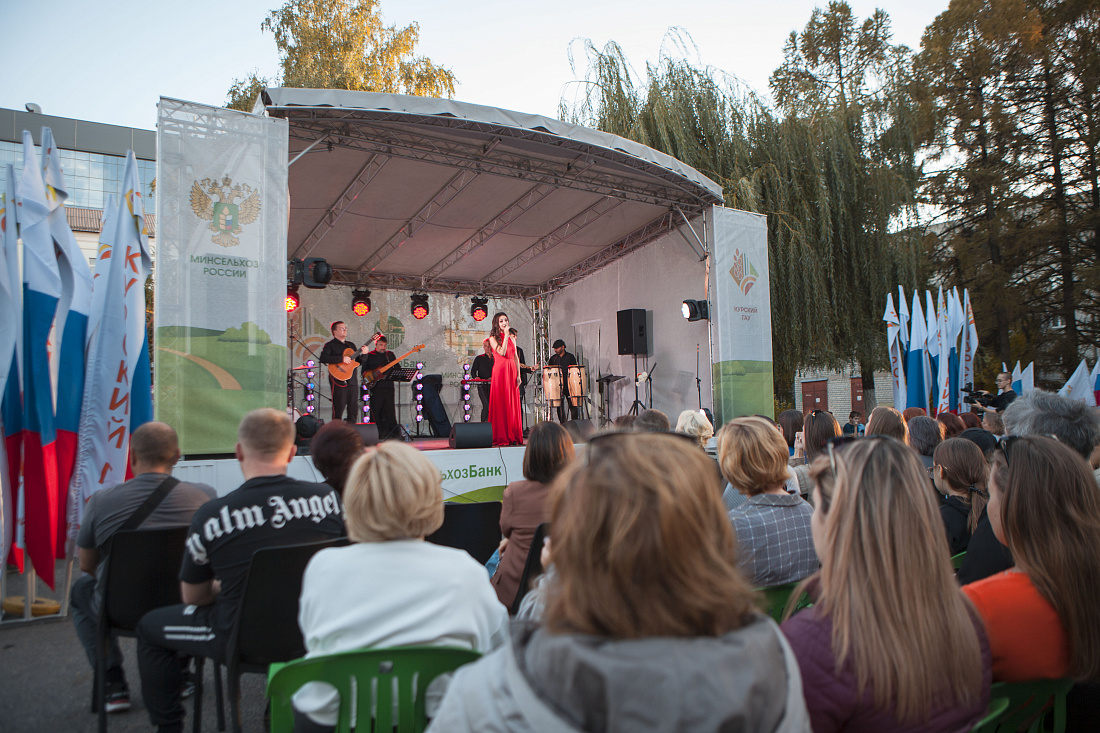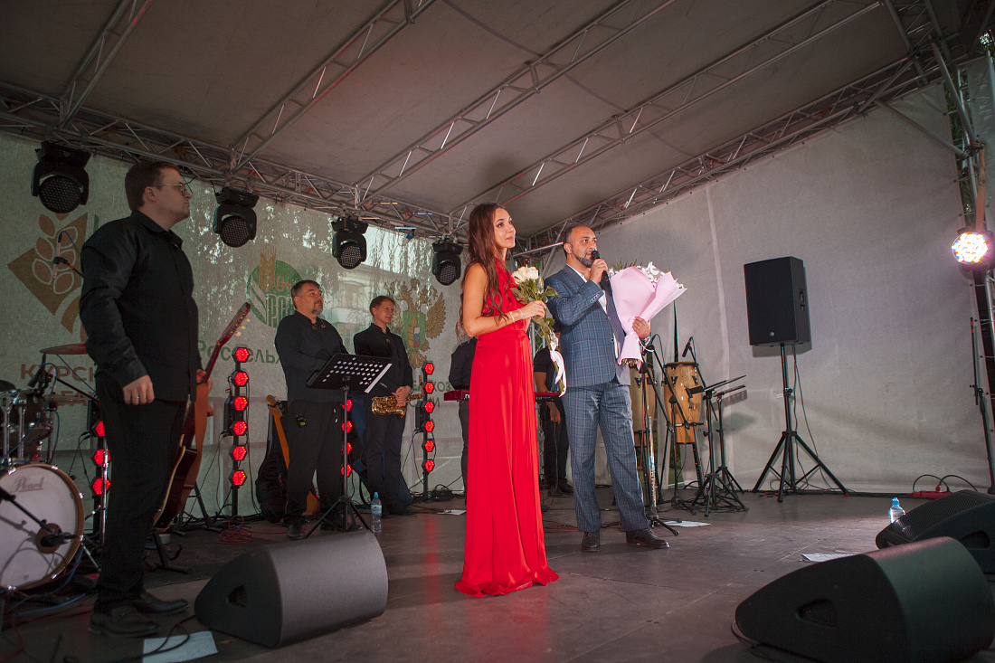 В исполнении артистки прозвучали гимн России, песни военных лет. Открыла концерт песня «Я не могу без тебя жить» на слова уроженца Льгова поэта Николая Асеева.