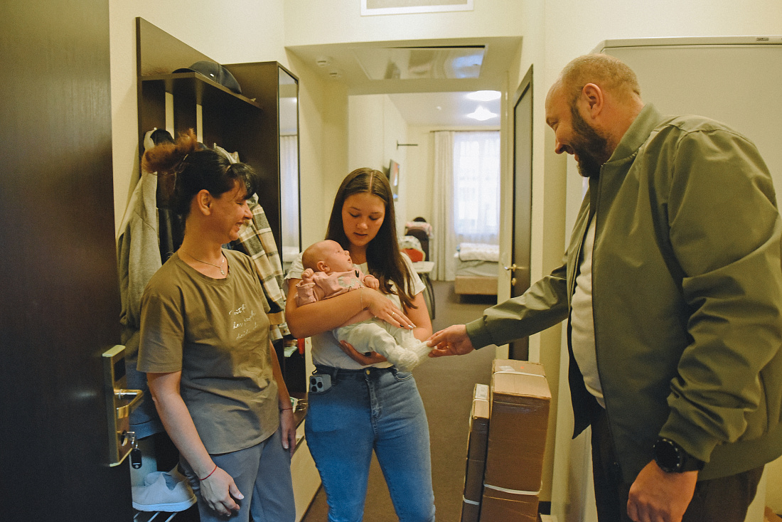 По поручению губернатора Курской области Алексея Смирнова заместители и руководители органов государственной власти регулярно посещают пункты временного размещения. Врио руководителя Администрации Курской области Александр Крылов посетил один из ПВР в Курске и вручил двум семьям с новорожденными детьми подарки.
