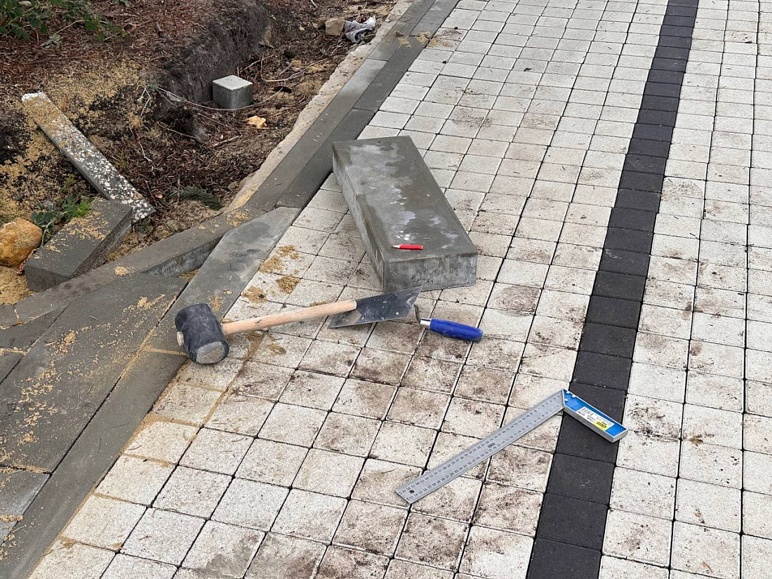 «Выполняем работы по укладке тротуарной плитки, подготовке оснований, в том числе под обратную засыпку чернозема и озеленение. На сегодня есть трудности с поставкой материала. Поставщики обещают в 20-х числах октября доставить его на объект. Это касается МАФов, информационных стендов и навигации. Погода не влияет, работаем в любое время», - заверил представитель подрядчика.