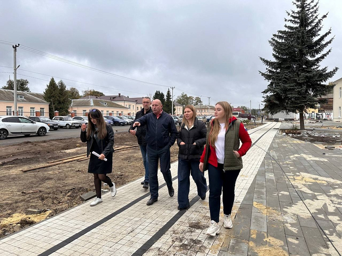 Ход работ проверили врио министра приоритетных проектов развития территорий и туризма Курской области Анна Коновалова, глава Щигров Сергей Черников и специалисты регионального Центра компетенций развития городской среды.