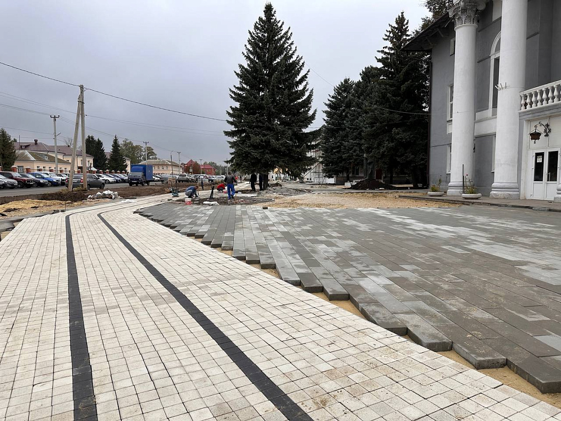 В Щиграх продолжают благоустраивать площадь перед заводом «Геомаш»