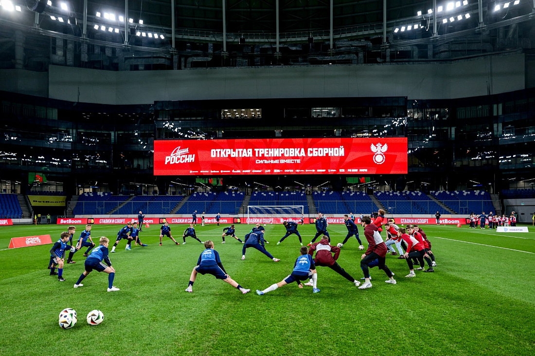 Сборная России по футболу провела в Москве открытую тренировку для воспитанников детских спортивных школ из Курской и Белгородской областей. Звезды отечественного футбола во главе с Валерием Карпиным на стадионе «Динамо» приняли 200 юных спортсменов из Суджи, Льгова, Рыльска, Железногорска и Курска.