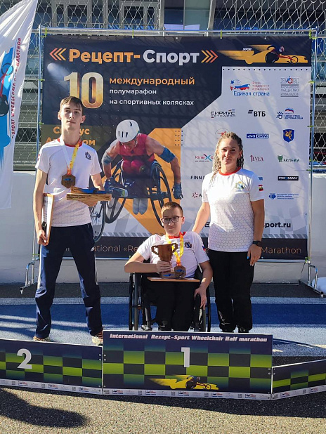 Курские спортсмены с ограниченными возможностями здоровья вернулись домой с победой! Тимур Ревенков стал лучшим на дистанции 9,5 км X Международного полумарафона на спортивных колясках «Рецепт-Спорт». Тимуру 14 лет, он чуть больше года тренируется в спортивной школе «Атлет». Это были его первые соревнования.