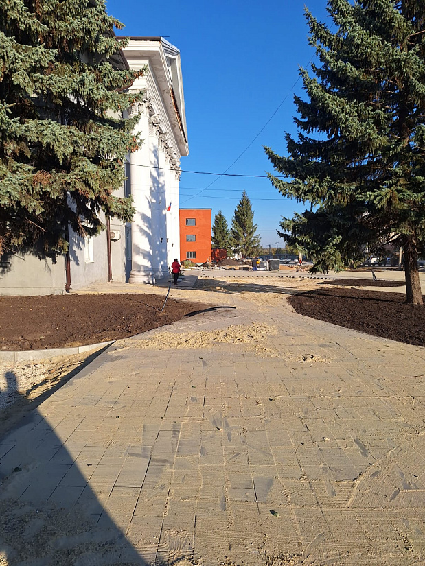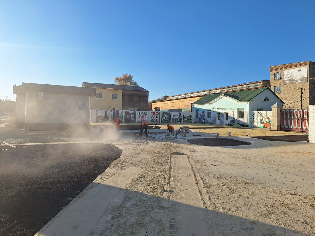 На данный момент здесь продолжается активная укладка тротуарной плитки – осталось уложить 700 кв. м, завезен чернозем, закуплены малые архитектурные формы, информационные стенды.