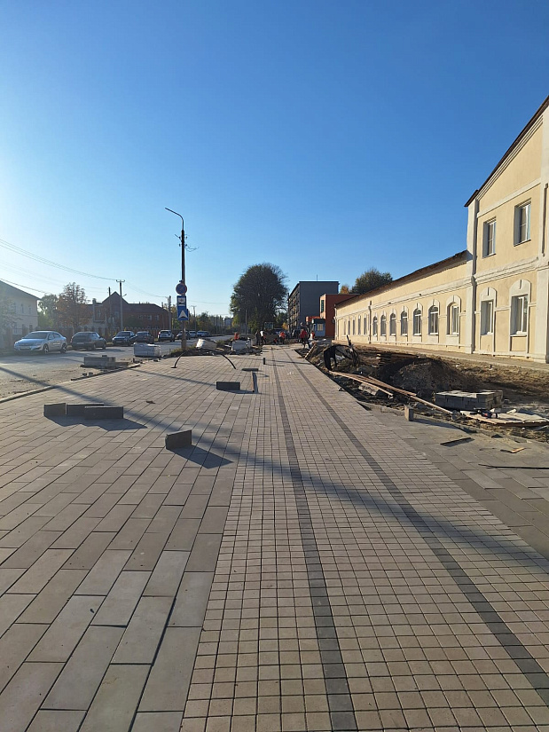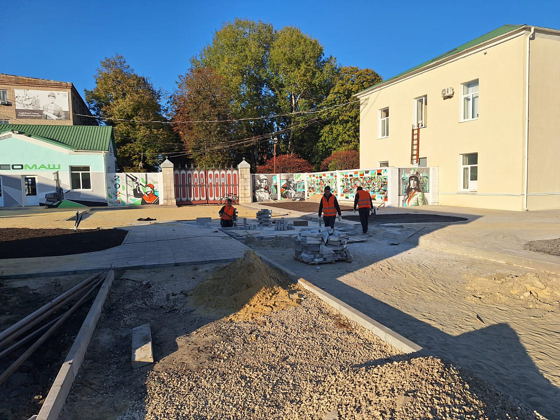 В Щиграх продолжается благоустройство общественной территории перед городским Домом культуры и АО «Геомаш». Здесь реализуется проект, признанный победителем Всероссийского конкурса лучших проектов создания комфортной городской среды в малых городах и исторических поселениях, который проводится в соответствии с нацпроектом «Жилье и городская среда».