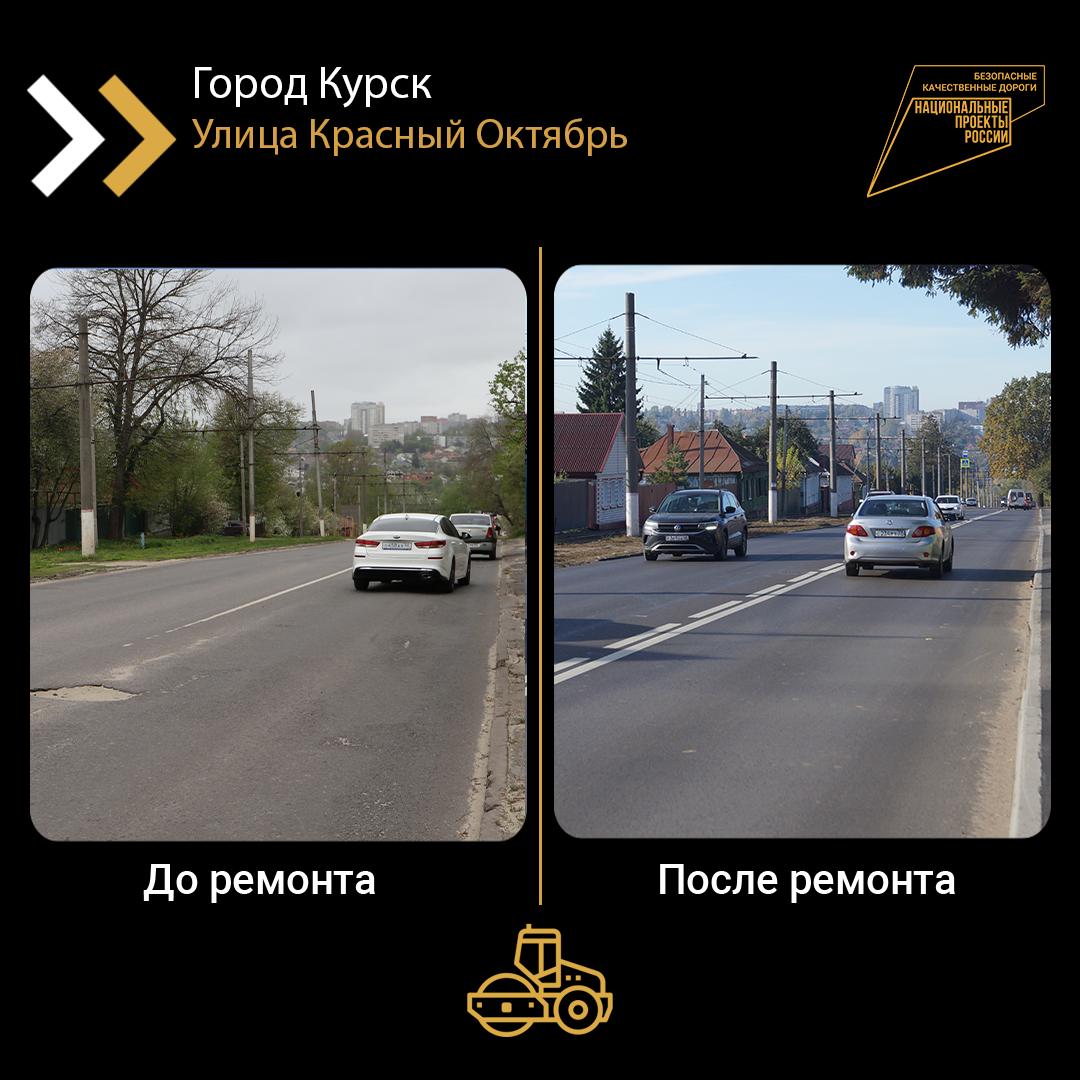 На улице Красный Октябрь в Курске завершился ремонт автомобильной дороги. Ее привели в нормативное состояние благодаря нацпроекту «Безопасные качественные дороги», инициированному Президентом РФ Владимиром Путиным.