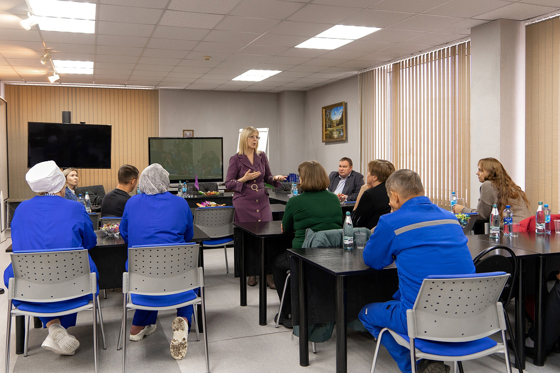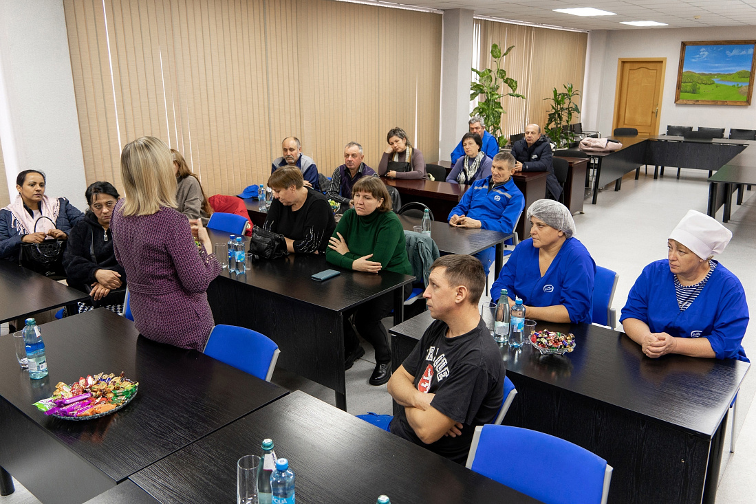 На предприятии состоялась встреча коллектива с депутатом Государственной Думы Иваном Солодовниковым, врио председателя комитета по труду и занятости населения Курской области Еленой Кулагиной и представителями областного центра занятости.