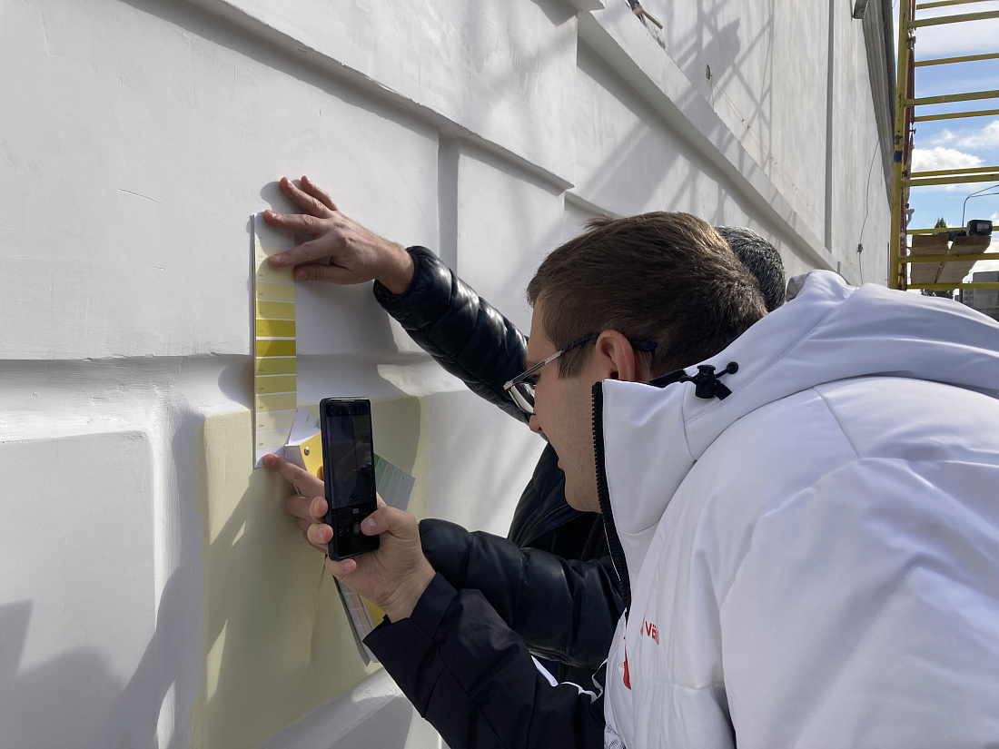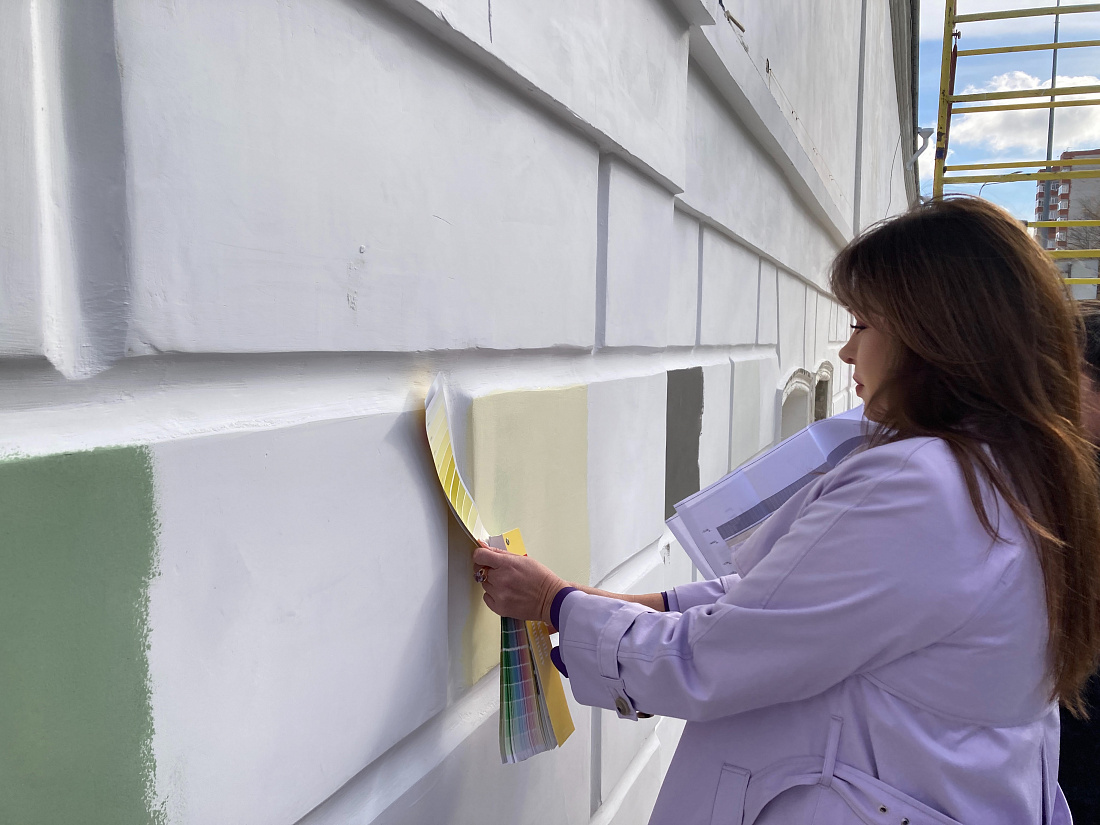 Концертно-творческий центр расположен в здании, являющемся объектом культурного наследия регионального значения «Здание манежа (театра)». Работы на объекте проводятся в соответствии с ранее согласованной научно-проектной документацией. После проведения пробных выкрасов утверждены все оттенки, которые будут использованы на фасаде здания. Теперь подрядчик приступит к следующему этапу.