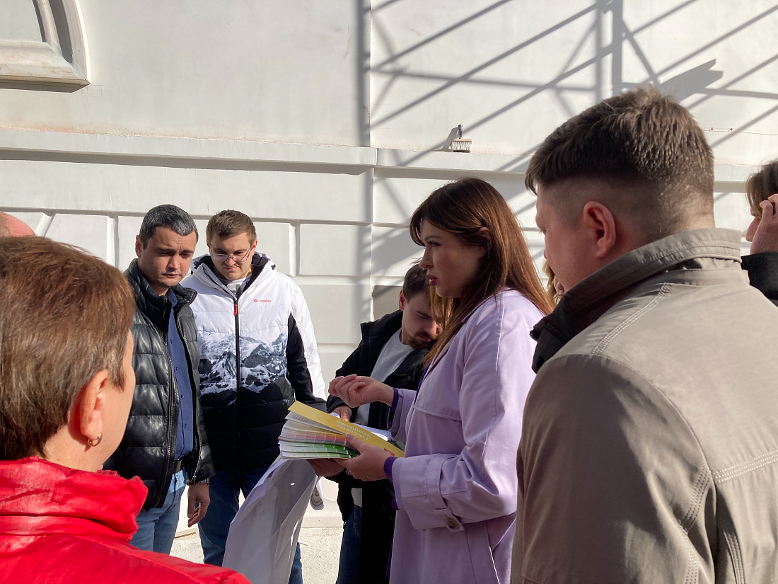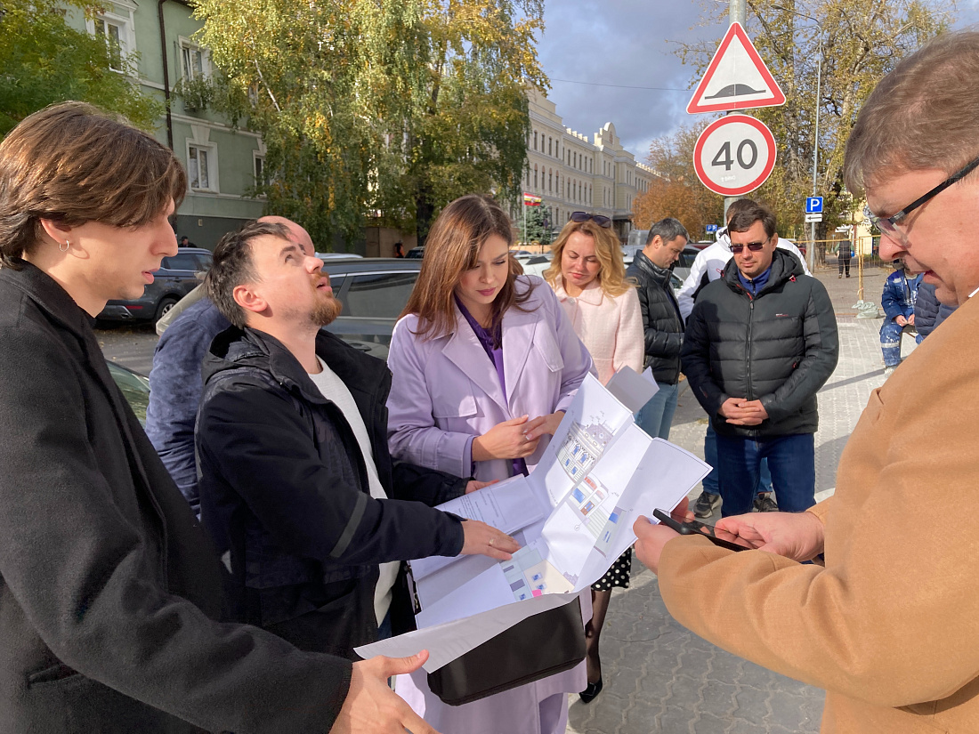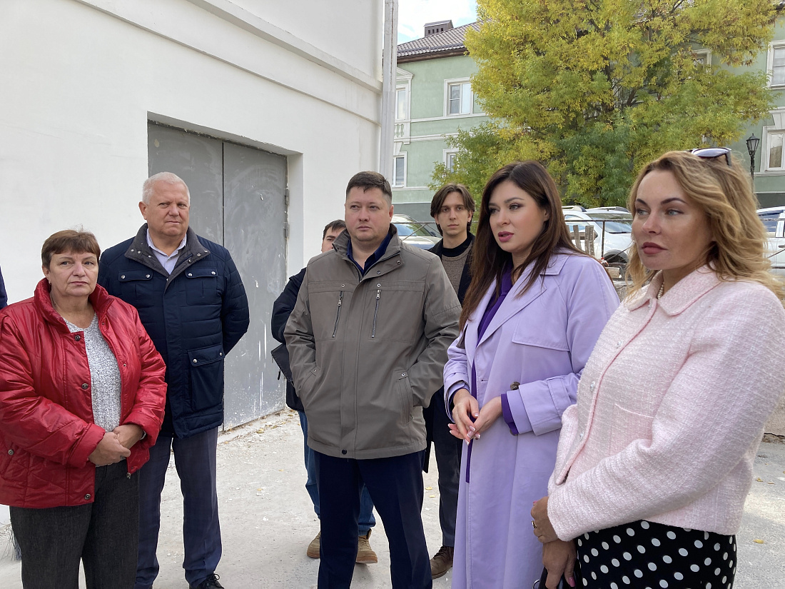 В ходе проведения ремонтно-реставрационных работ на здании концертно-творческого центра им. М.С. Щепкина в Курске специалисты подрядной организации сделали пробные выкрасы фасада. Их оценили министр по государственной охране объектов культурного наследия Курской области Ирина Мусьял вместе с сотрудниками министерства и архитекторами Инспекции по охране объектов культурного наследия Курской области.
