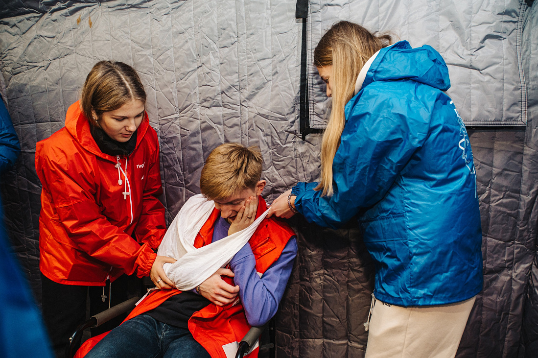 Для команд было организовано три этапа, каждый из которых представлял собой задание по оказанию первой помощи в различных ситуациях: при непроходимости дыхательных путей, нарушении сознания, остановке кровообращения, а также при различных ранах и травмах. На одном из этапов команды должны были объединиться, чтобы оказать помощь троим пострадавшим в результате атаки беспилотником. В процессе работы школьникам приходилось использовать подручные предметы и материалы.