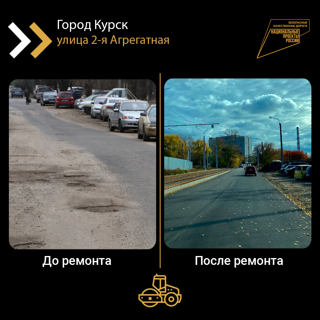 В Курске отремонтировали автомобильную дорогу на улице 2-й Агрегатной. Протяженность объекта - более 2,2 км. Дорожное покрытие здесь привели в нормативное состояние благодаря нацпроекту «Безопасные качественные дороги», инициированному Президентом РФ Владимиром Путиным.