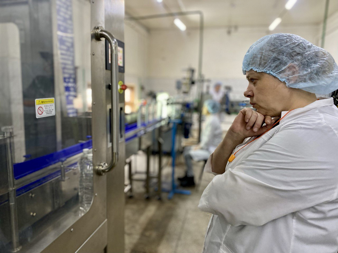 «В этом году половину затрат на оборудование нам в виде субсидии возместило Министерство промышленности, торговли и предпринимательства. Производительность нового блока – 3 тысячи бутылок в час. На территории комбината находится артезианская скважина глубиной 120 м, это нам позволяет выпускать природную минеральную столовую воду», - рассказала мастер производства Курского безалкогольного комбината Ольга Волобуева.