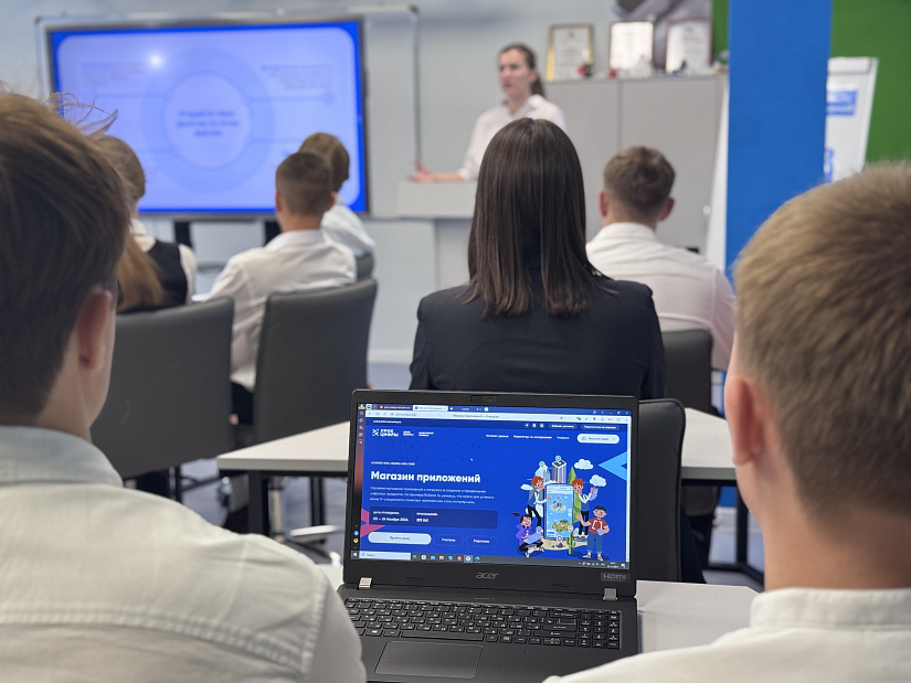 В качестве гостей на открытом уроке присутствовали представители Минцифры региона и городского комитета образования. Вместе с учениками 10 класса они узнали, как создаются и развиваются цифровые сервисы на примере процессов магазина приложений RuStore.