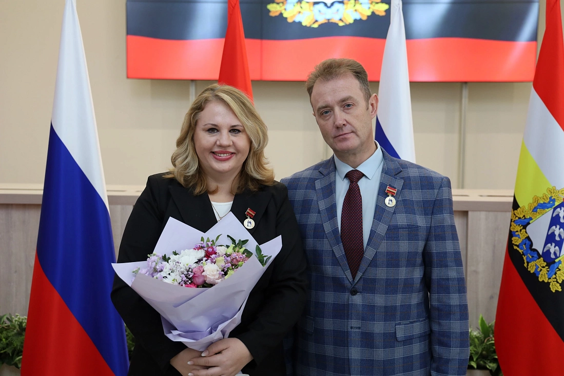 В Доме Советов прошла церемония награждения родителей нагрудным знаком «За заслуги в воспитании детей», почетным знаком «Материнская слава – Отцовская доблесть», медалью «Мать героя». В мероприятии принял участие заместитель губернатора Курской области Андрей Белостоцкий.