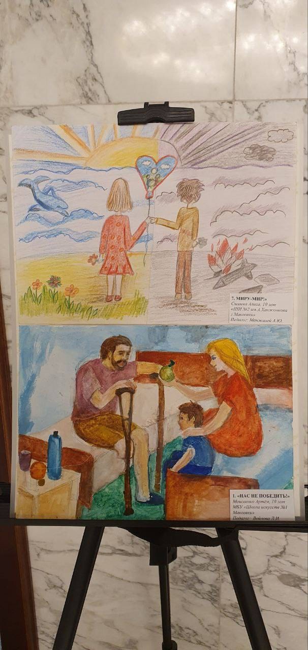 Проект «Мир глазами детей» призван донести правду о преступной сущности киевского режима. Каждый маленький участник выставки представляет себе мир без пролетающих самолетов и взрывов, с мирным небом.