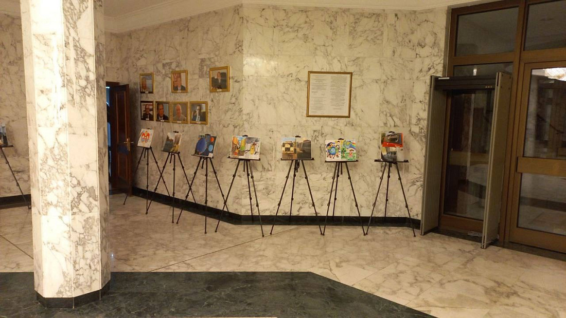 На фотовыставке представлены рисунки и фотографии детей из прифронтовых районов, которые мечтают о мирном времени.