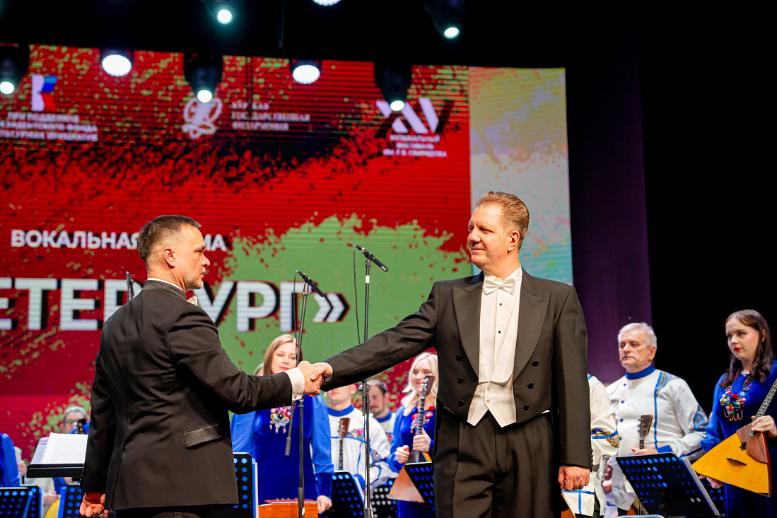 В исполнении солиста Большого театра Владимира Байкова, оркестра русских народных инструментов им. Виктора Гридина под управлением Павла Горбунова, вокального ансамбля «Россы» зрители услышали малоизвестные сочинения великого композитора, которые не звучали в России более 80 лет. В программу вошли литературно-музыкальная композиция боевых эпизодов Гражданской войны «Десять дней под Касторной», один из вокальных циклов композитора поэма «Петербург» на стихи Александра Блока и другие.