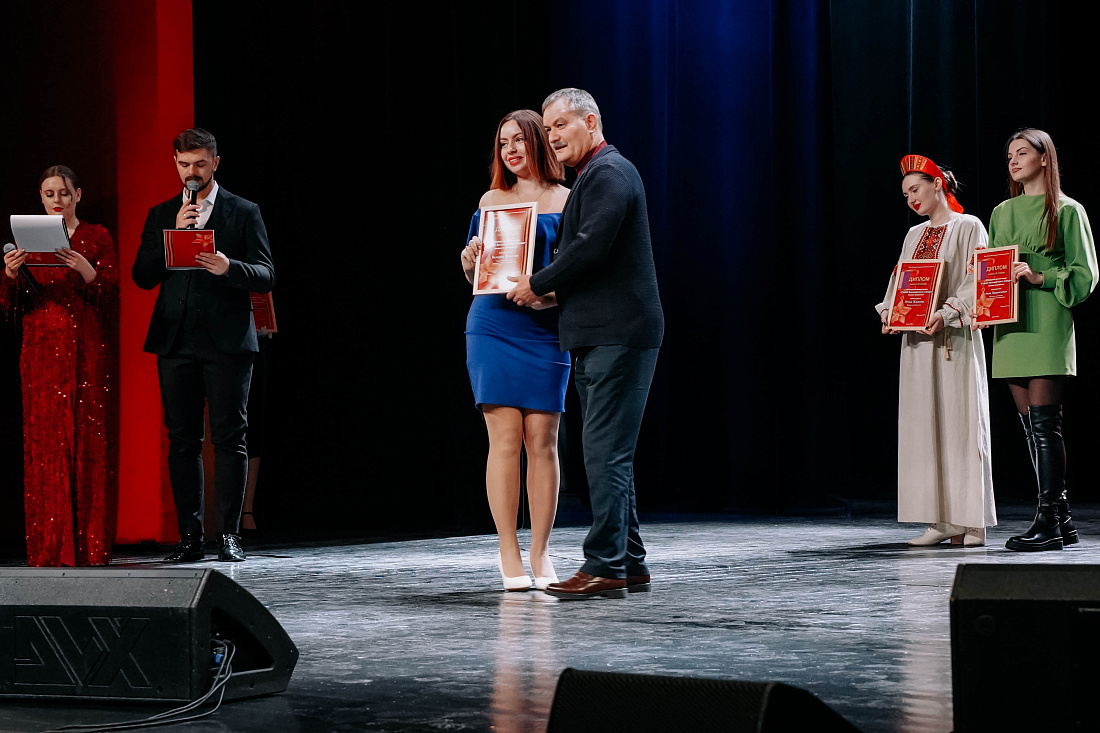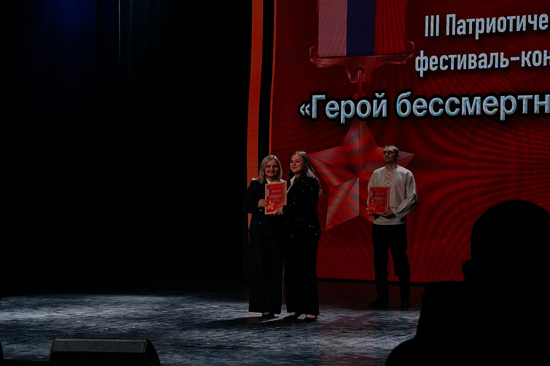 В областном Дворце молодежи состоялся гала-концерт III Патриотического фестиваля-конкурса «Герой бессмертного отряда». В торжественной обстановке заместитель министра внутренней и молодежной политики Курской области Мария Кондрашова и заместитель министра образования и науки региона Александр Кабан поздравили участников и наградили победителей и лауреатов.