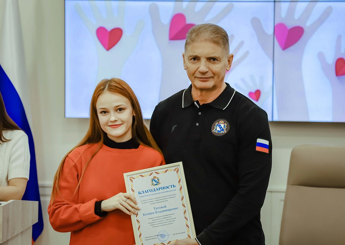 Заместитель губернатора Андрей Белостоцкий наградил волонтеров, помогающих переселенцам из приграничья