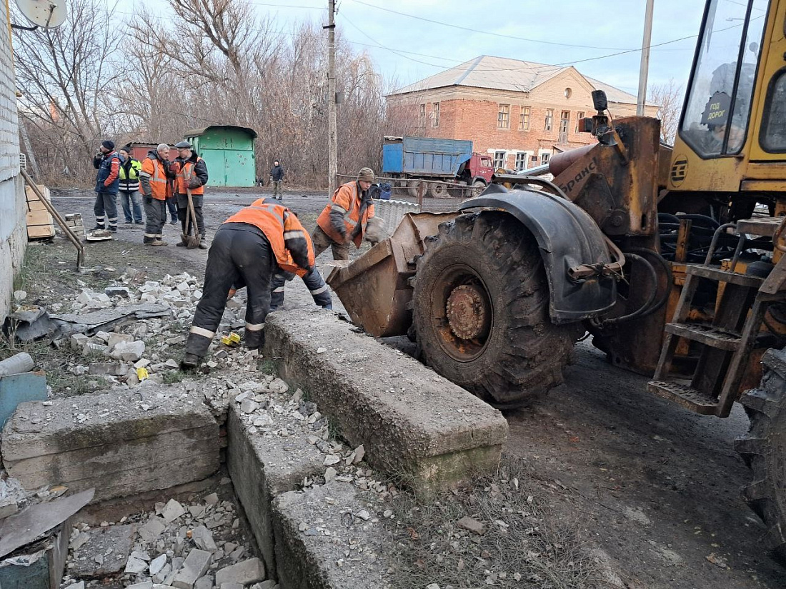 В Льгове приводят в порядок улицы и дворы, пострадавшие после обстрела со стороны ВСУ. По информации оперативного штаба, задействовано 7 единиц техники, на месте работают 14 рабочих Льговского дорожно-эксплуатационного предприятия. Они расчищают завалы, вывозят строительный мусор, убирают осколки и засыпают воронки.