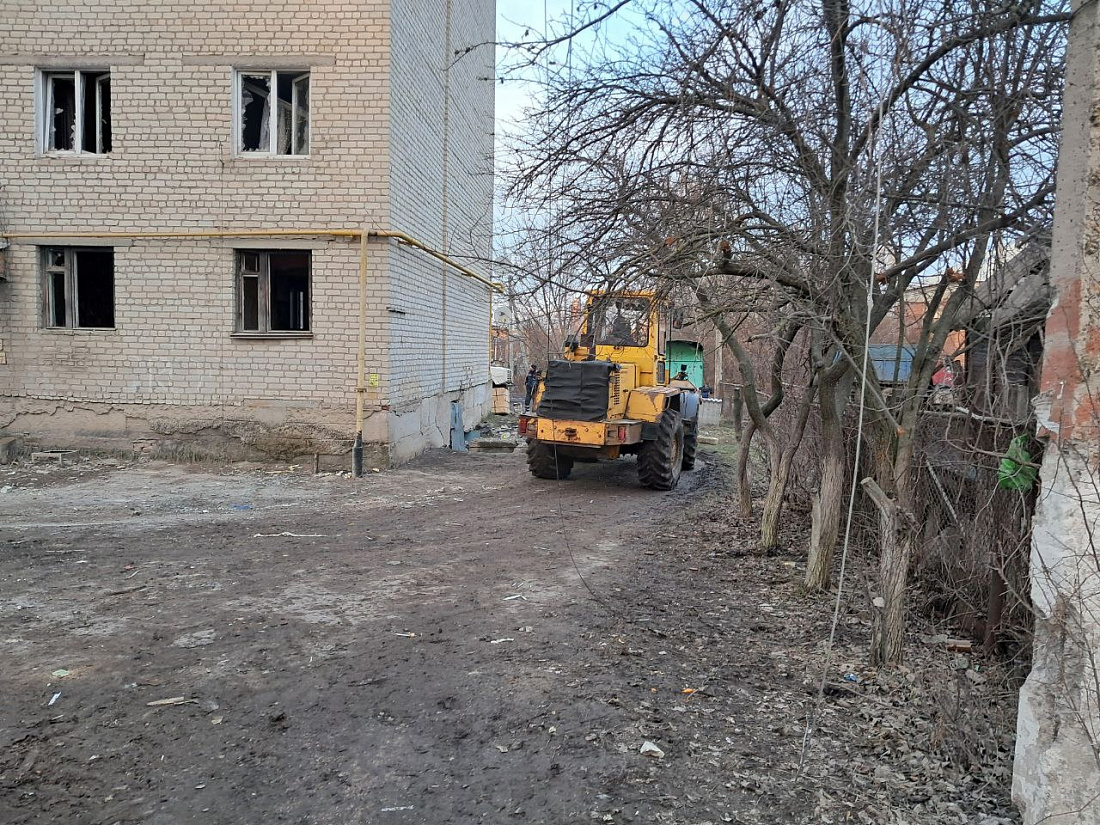 В Льгове приступили к расчистке улиц и дворов, пострадавших в результате обстрела