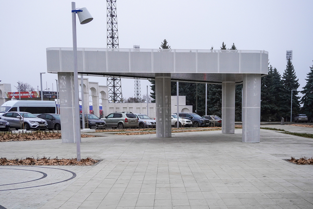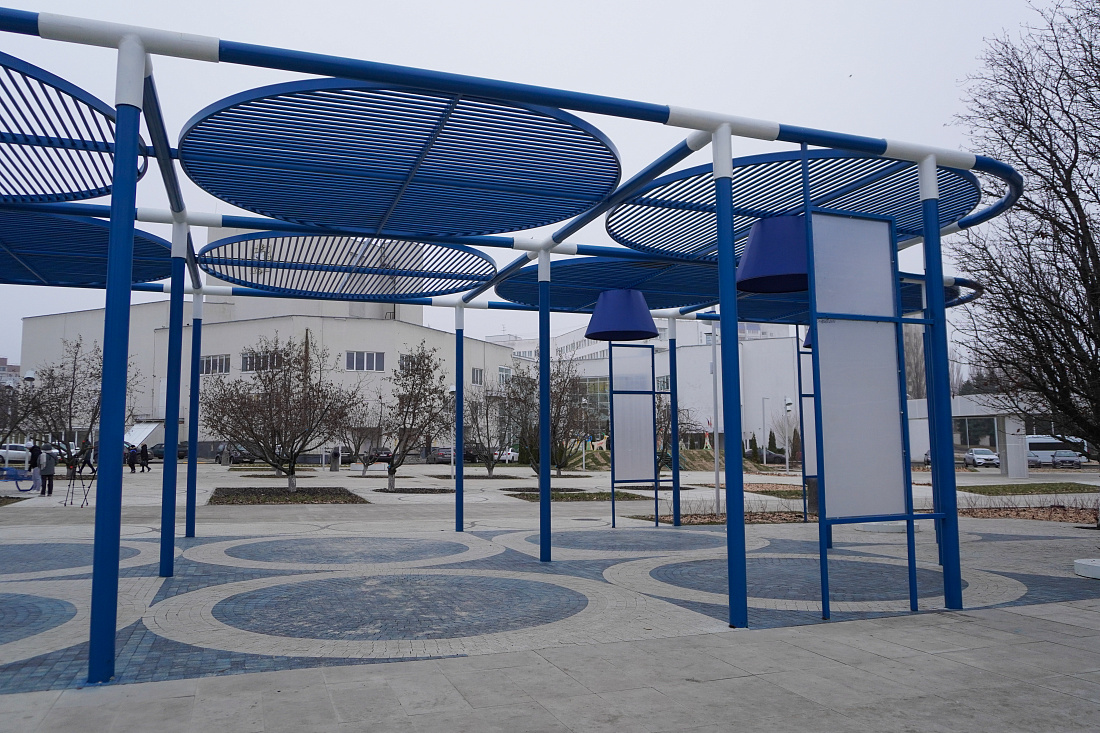 В дизайн общественного пространства вписаны элементы, символизирующие реактор Курской АЭС.