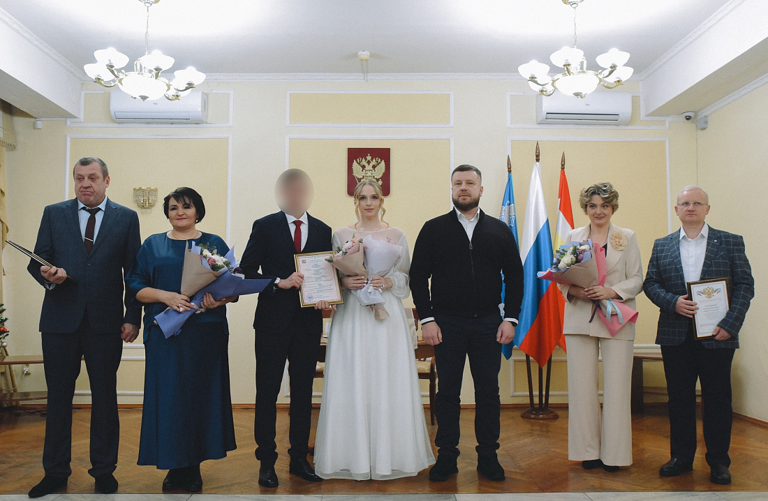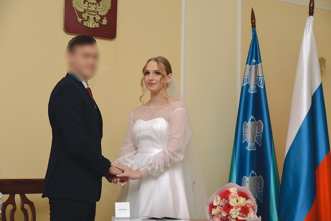 Как отметила врио председателя регионального комитета ЗАГС Ольга Воробьева, сегодня в Курской области проведено 10 церемоний бракосочетания, это первые свадьбы 2025 года. Всего в течение прошедшего года было зарегистрировано 6 205 браков, более 800 из них - с военнослужащими и действующими участниками СВО.