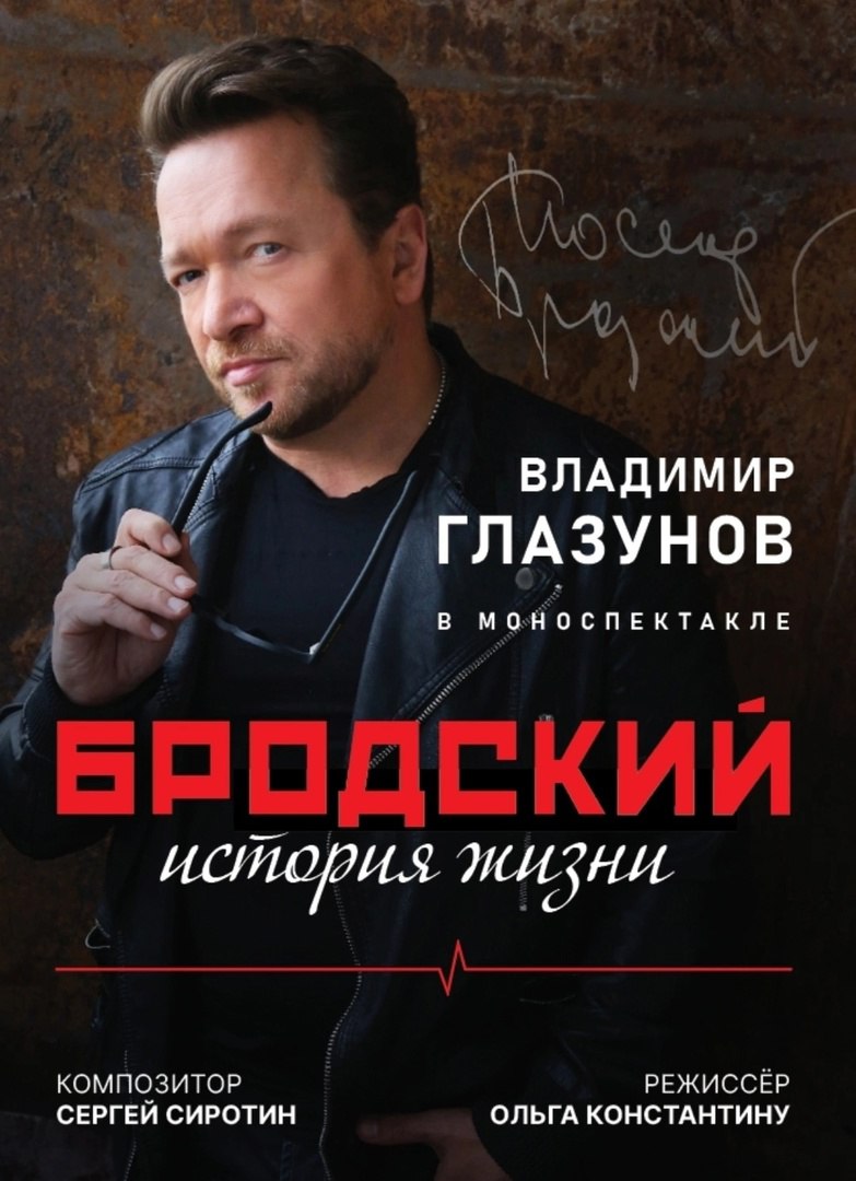 13 и 14 января в Курском ТЮЗе «Ровесник» пройдет моноспектакль «Бродский. История жизни». Для зрителей выступит известный телеведущий, актер и режиссер Владимир Глазунов. Начало в 19:00.