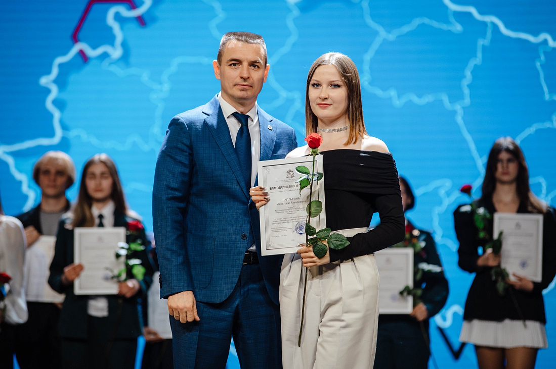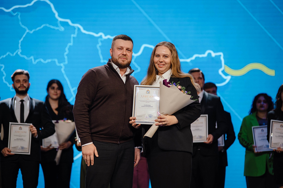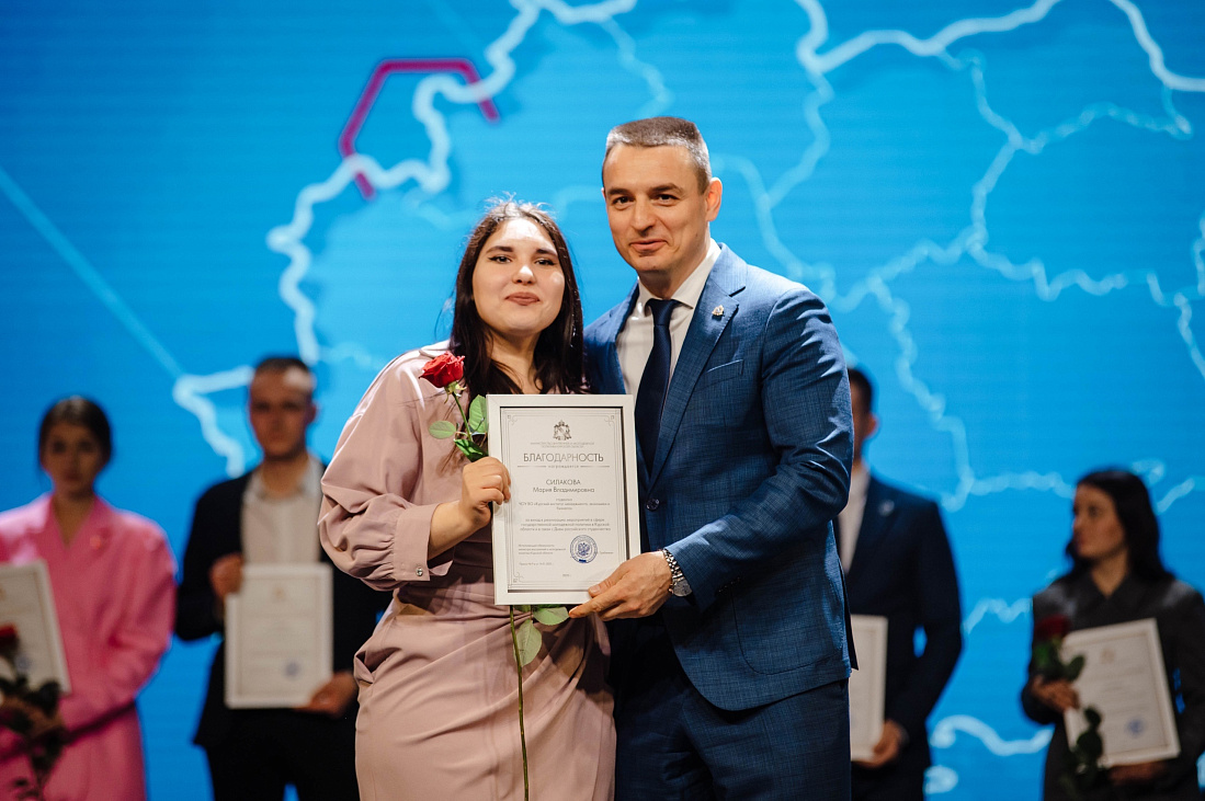 В Курске состоялась торжественная церемония награждения лауреатов премии Губернатора Курской области для поддержки талантливой молодежи по итогам 2024 года. Также в преддверии Дня российского студенчества обучающиеся вузов и ссузов были отмечены благодарностями Министерства внутренней и молодежной политики региона.