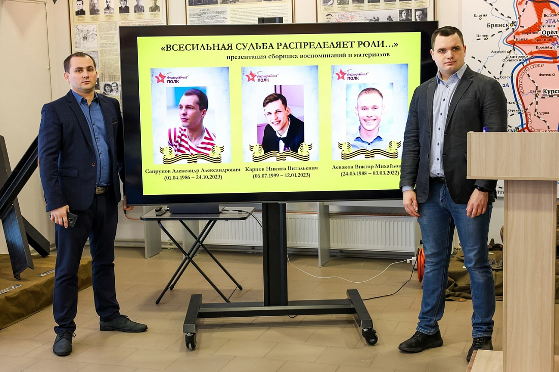 В выставочном центре «Курск - город воинской славы» представили седьмую книгу из серии «Герои и подвиги» регионального отделения Российского военно-исторического общества в Курской области, она называется «Всесильная судьба распределяет роли...». Новый сборник повествует о героях специальной военной операции - выпускниках Курского колледжа культуры Александре Сапрунове, Викторе Левакове и Никите Карпове. Серия издается по инициативе члена РВИО, ветерана органов внутренних дел, педагога Дворца пионеров и школьников Владимира Быканова.