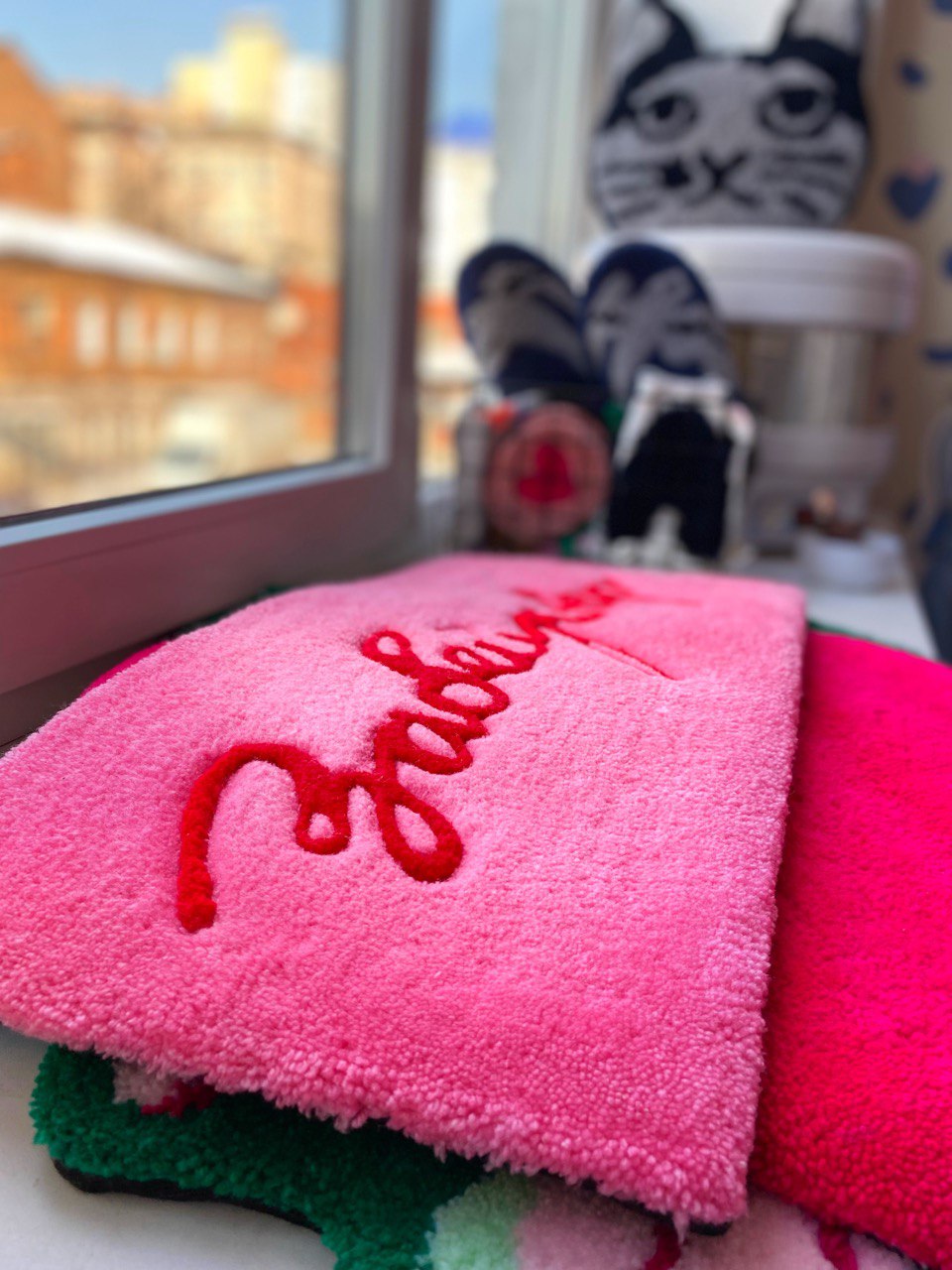 «Тафтинг-ган – рабочий пистолет, у меня, конечно, розовый. Эта техника – абсолютная любовь с первого стежка. Решила, что такое удовольствие от процесса должны получать и другие. В тафтинге нереально ошибиться, да и исправить можно все. Проводим здесь мастер-классы, в том числе корпоративные, девичники, дни рождения. «Забиваем» что угодно – от подставок под горячее и шопперов до собственно ковров», - рассказала Екатерина Епифанцева.
