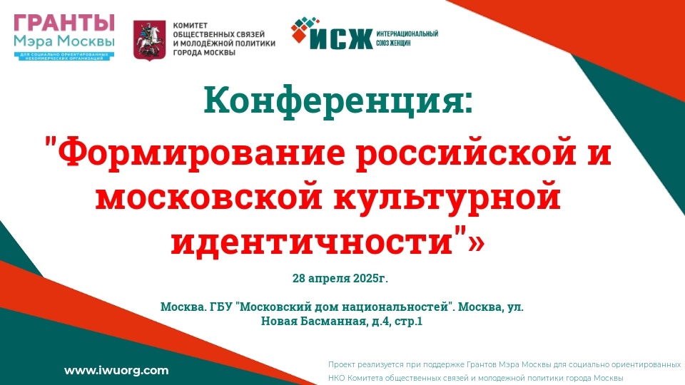 В столице России состоится масштабная конференция, посвященная вопросам культурной идентичности в условиях многополярного мира. Проект реализуется при поддержке грантов мэра Москвы для социально ориентированных НКО комитета общественных связей и молодежной политики города Москвы. Мероприятие объединит экспертов, представителей власти, деятелей культуры, образования и туристической индустрии для диалога о сохранении традиций, инновациях и роли Москвы как центра культурного наследия России.