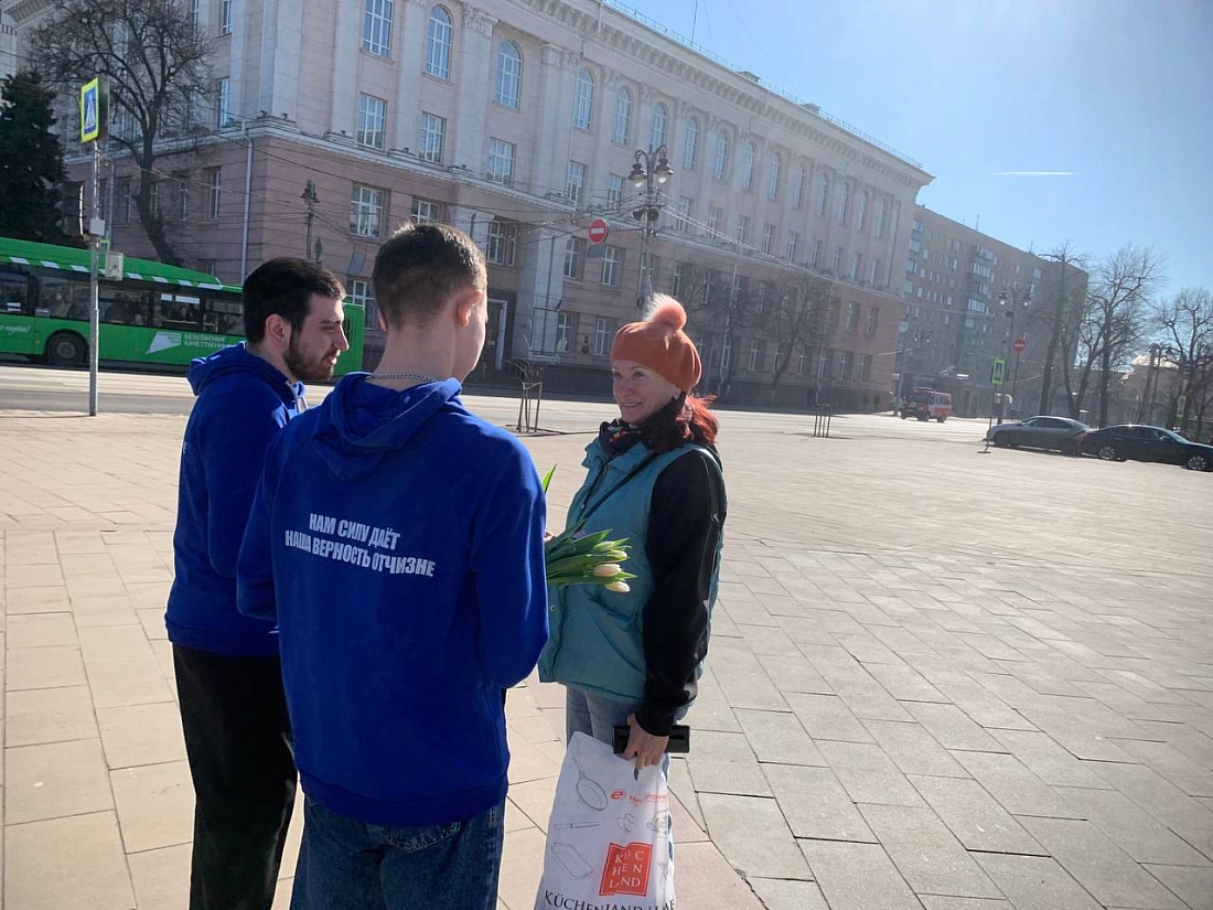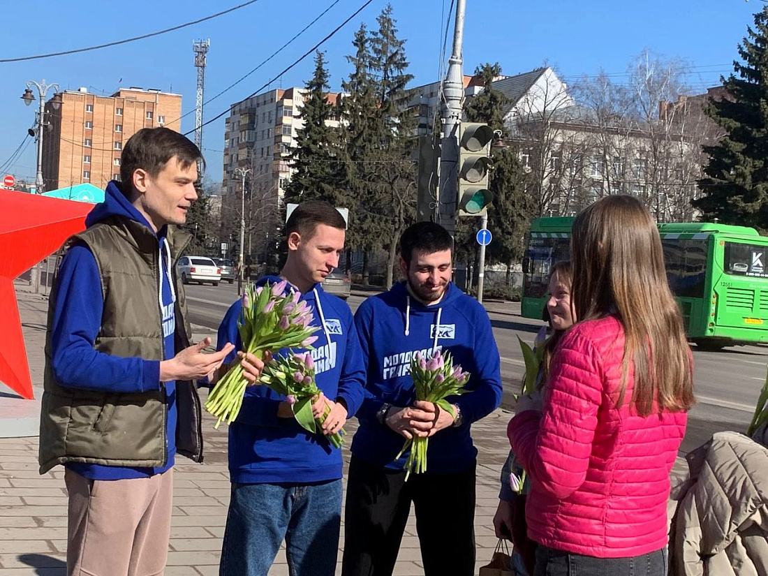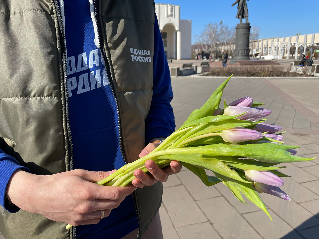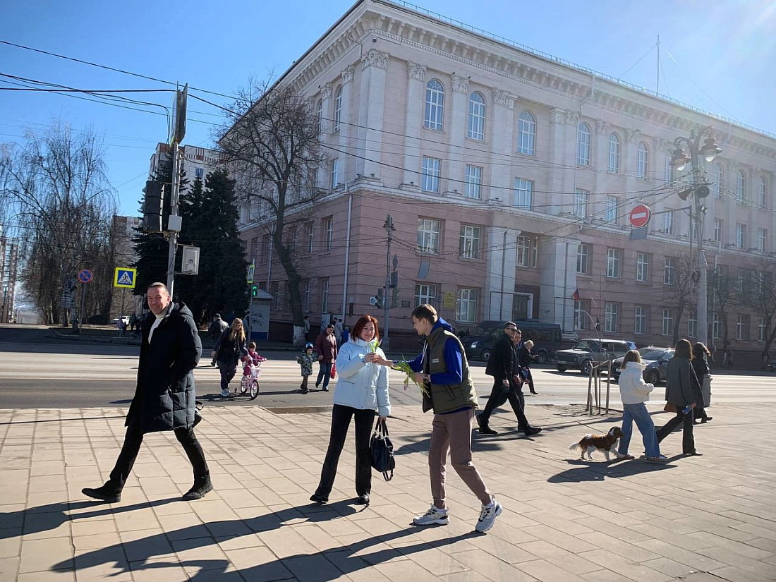 Активисты подарили тюльпаны женщинам в центре Курска