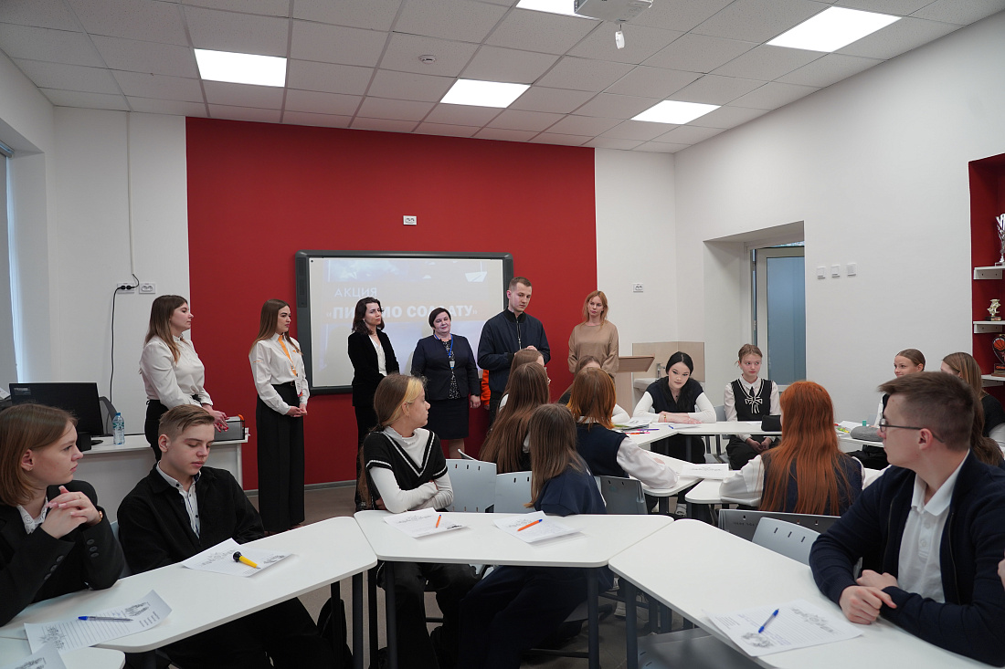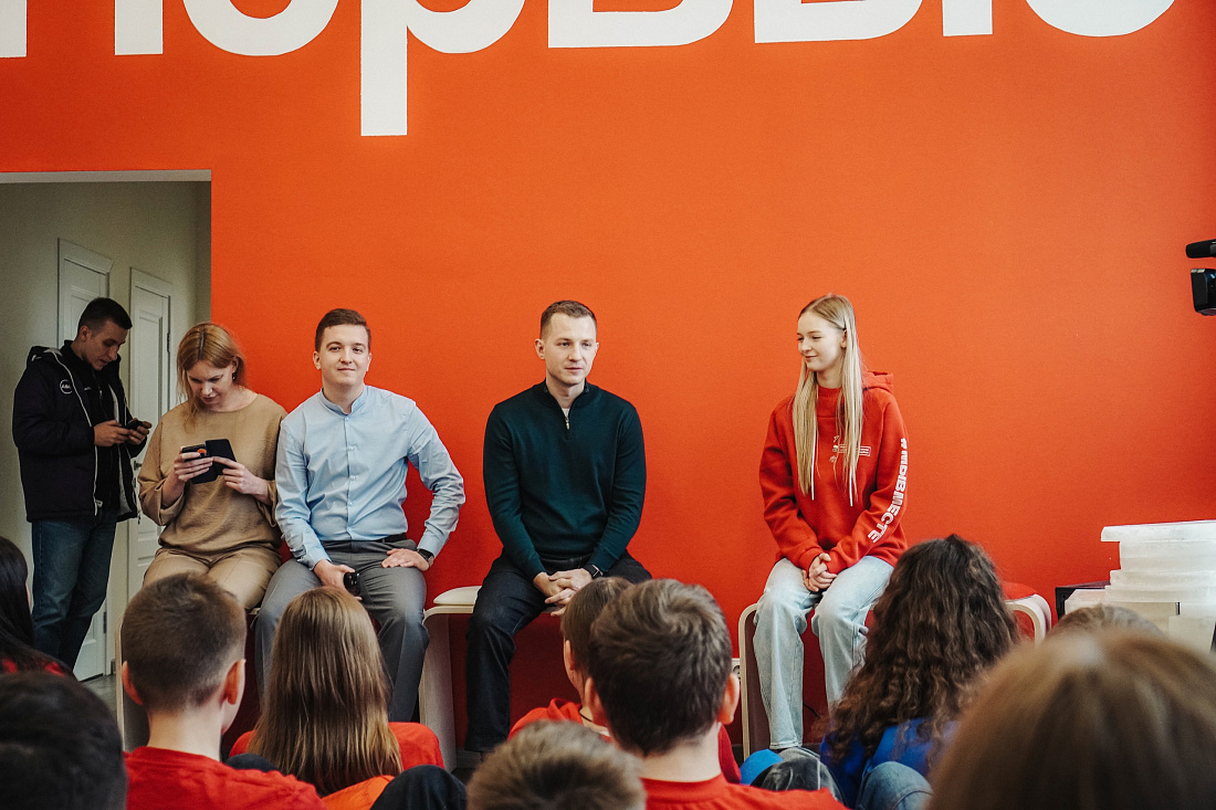Артем Метелев посетил лицей-интернат №1 Курска. Здесь он пообщался с обучающимися о волонтерской деятельности, борьбе с буллингом в школах и развитии различных проектов «Движения Первых».