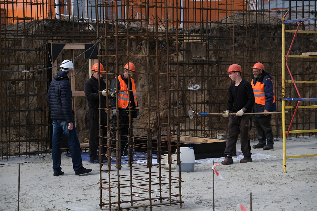 На сегодняшний день здесь производят армирование стен технического подполья. Строительство ведется с незначительным отставанием от графика: запланированные на эту дату работы по монтажу блочной котельной и прокладке инженерных сетей пока не выполнены.