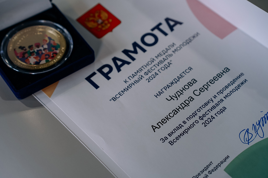 В ходе мероприятия и.о. министра внутренней и молодежной политики региона Владимир Гребенкин вручил памятные медали за вклад в подготовку и проведение Всемирного фестиваля молодежи 2024. В соответствии с поручениями Президента РФ о сохранении и развитии фестивального наследия Дирекция Всемирного фестиваля молодежи продолжает работу, направленную на укрепление международного молодежного сотрудничества.
