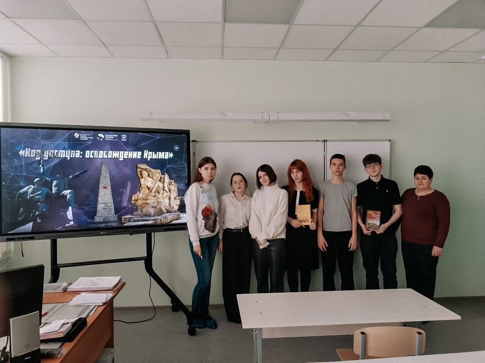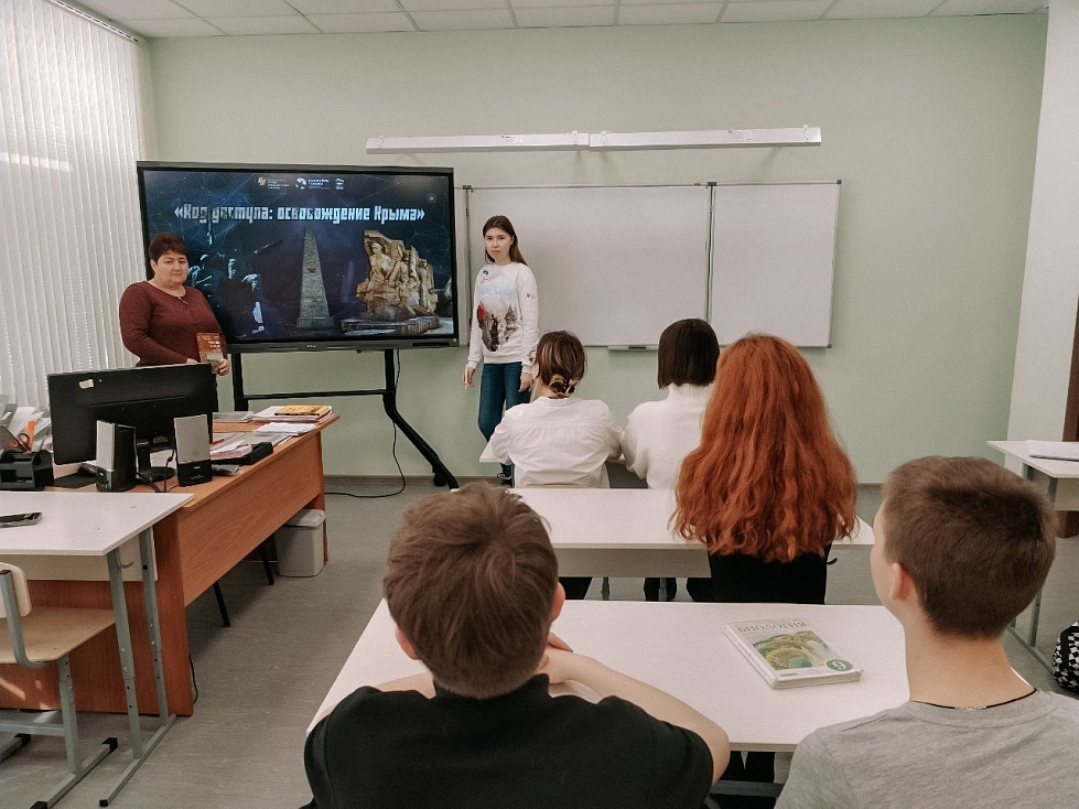 Также «Волонтеры Победы» Курской области совместно с работниками Культурного центра семейного чтения и досуга им. А.П. Гайдара представили вниманию учеников курской школы №41 видеоэкскурсию «Код доступа: освобождение Крыма» о событиях истории полуострова Крым в годы Великой Отечественной войны. Ученики школы №60 приняли участие во Всероссийском уроке «День воссоединения Крыма с Россией».
