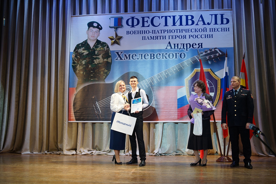 Во Дворце пионеров и школьников г. Курска состоялся гала-концерт победителей 25-го юбилейного Фестиваля военно-патриотической песни памяти Героя России Андрея Хмелевского.