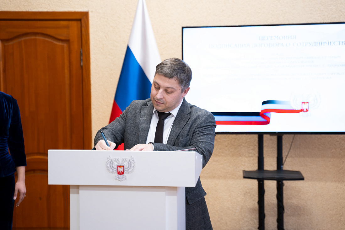 В Курском музыкальном колледже им. Г.В. Свиридова состоялась торжественная церемония подписания соглашений между колледжем, Юго-Западным государственным университетом и Донецкой государственной музыкальной академией им. С.С. Прокофьева. В мероприятии приняли участие врио министра культуры региона Роберт Григорьян, ректор ЮЗГУ Сергей Емельянов, директор колледжа Валерий Яковлев, а также ректор Донецкой государственной музыкальной академии им. С.С. Прокофьева Роман Качалов.