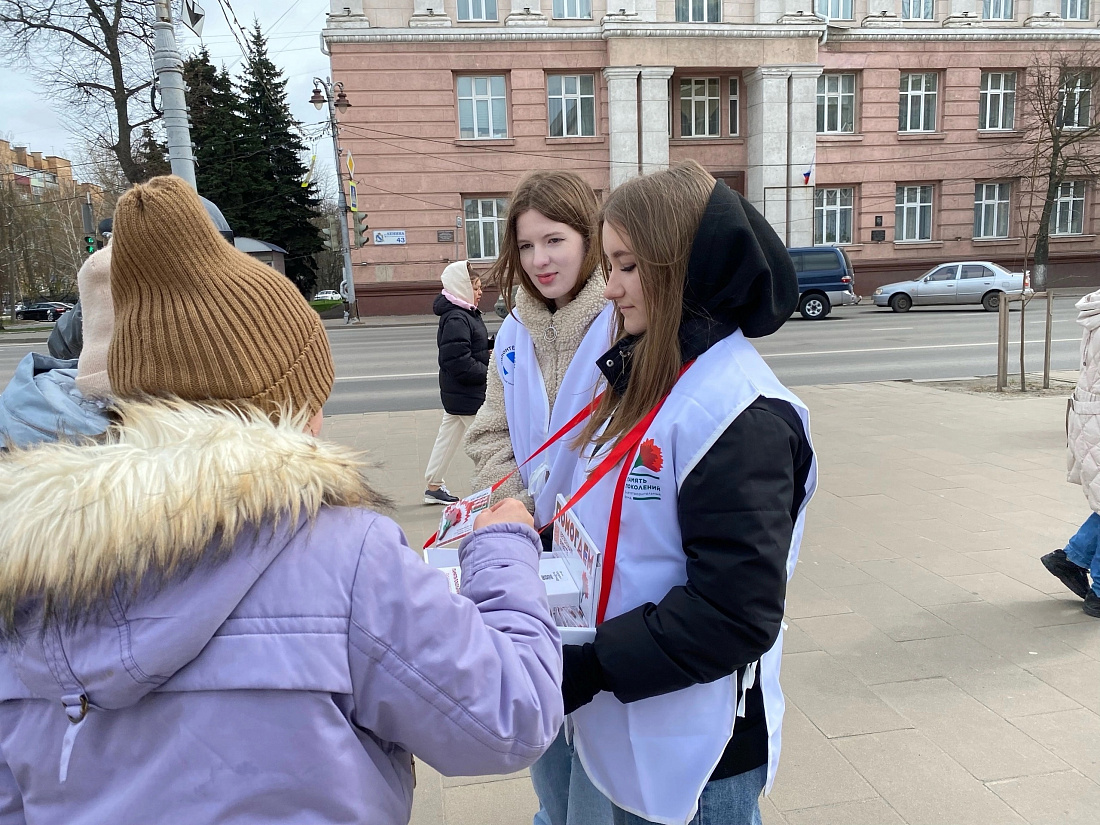 В Курске на Театральной площади в преддверии празднования 80-летия Победы в Великой Отечественной войне стартовала благотворительная акция «Красная гвоздика». Ее проводит благотворительный фонд «Память поколений» вместе с «Волонтерами Победы».