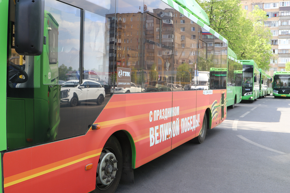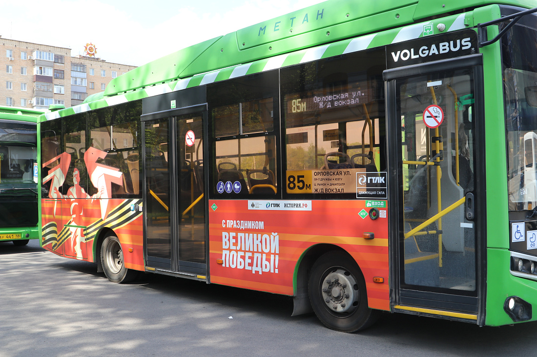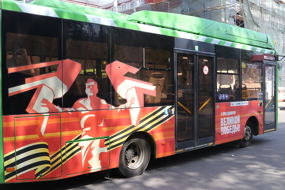 В областном центре к 22 единицам общественного транспорта, украшенным к 80-летию Победы в Великой Отечественной войне, добавятся еще 6 автобусов «Волгабас» с изображением героя-солдата - центральной фигуры мемориального комплекса «Курская битва» в Поныровском районе.