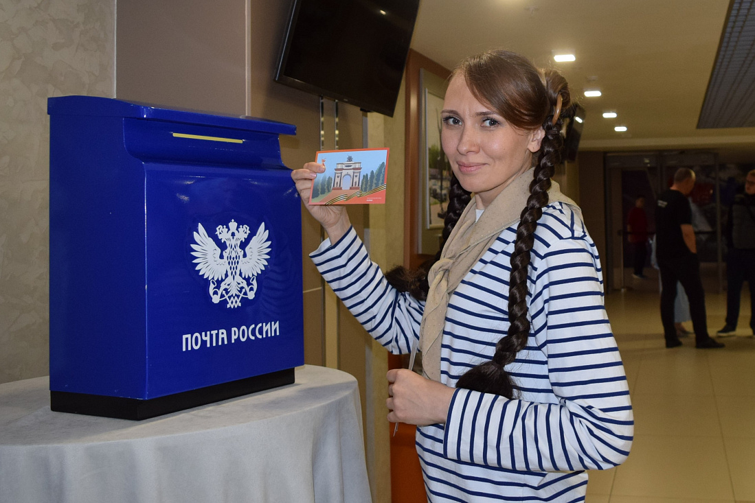 В этом году сотрудники почты в Курской области отправили сотни уникальных открыток в честь Дня Победы из зоны посткроссинга, которая работала на премьерном показе проекта «Народная история «Непокоренный Курск».