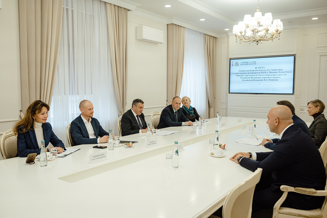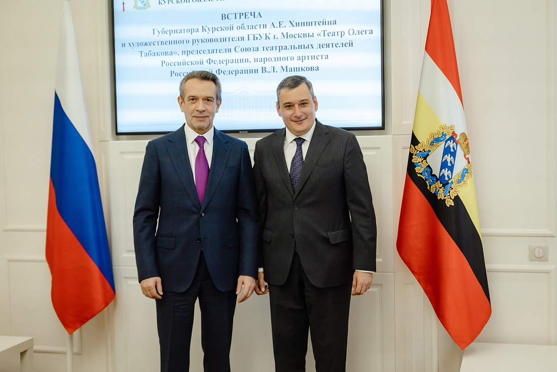 Владимир Машков встретился с главой региона. Они обсудили ряд важных вопросов, в частности проблему высшего актерского образования. Как отметил Александр Хинштейн, необходимо создать условия, чтобы куряне становились артистами в своем регионе и оставались работать в курских театрах. Владимир Машков поделился опытом экспериментальной интегрированной программы среднего, общего и высшего образования по формату кадетского артистического училища. Также договорились о проведении творческих встреч членов СТД с курскими артистами и организации стажировок.