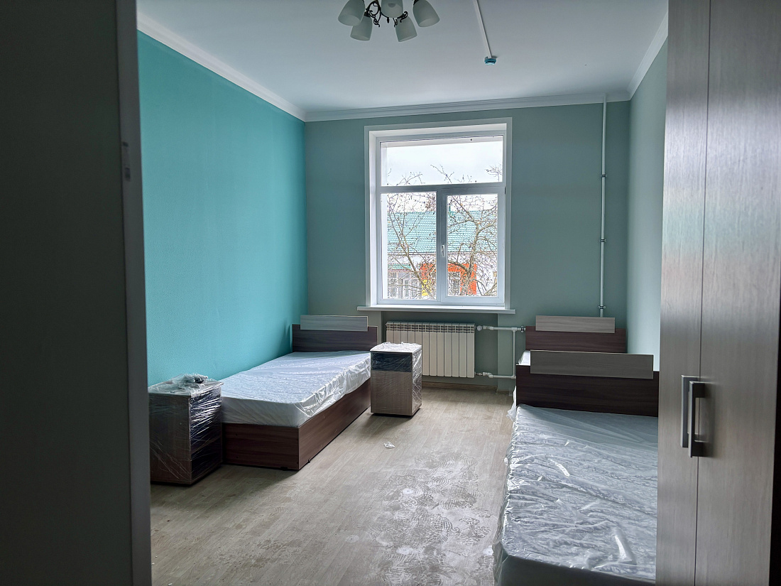 В Курском доме социального обслуживания в ходе капремонта был полностью отремонтирован жилой корпус для маломобильных граждан, обновлены кровли и фасады, заменены инженерные системы. После модернизации здесь открылись новые отделения, в том числе для инвалидов боевых действий — участников СВО. На сегодняшний день в учреждении проживает 152 человека, 84 из них — эвакуированные с приграничных территорий.